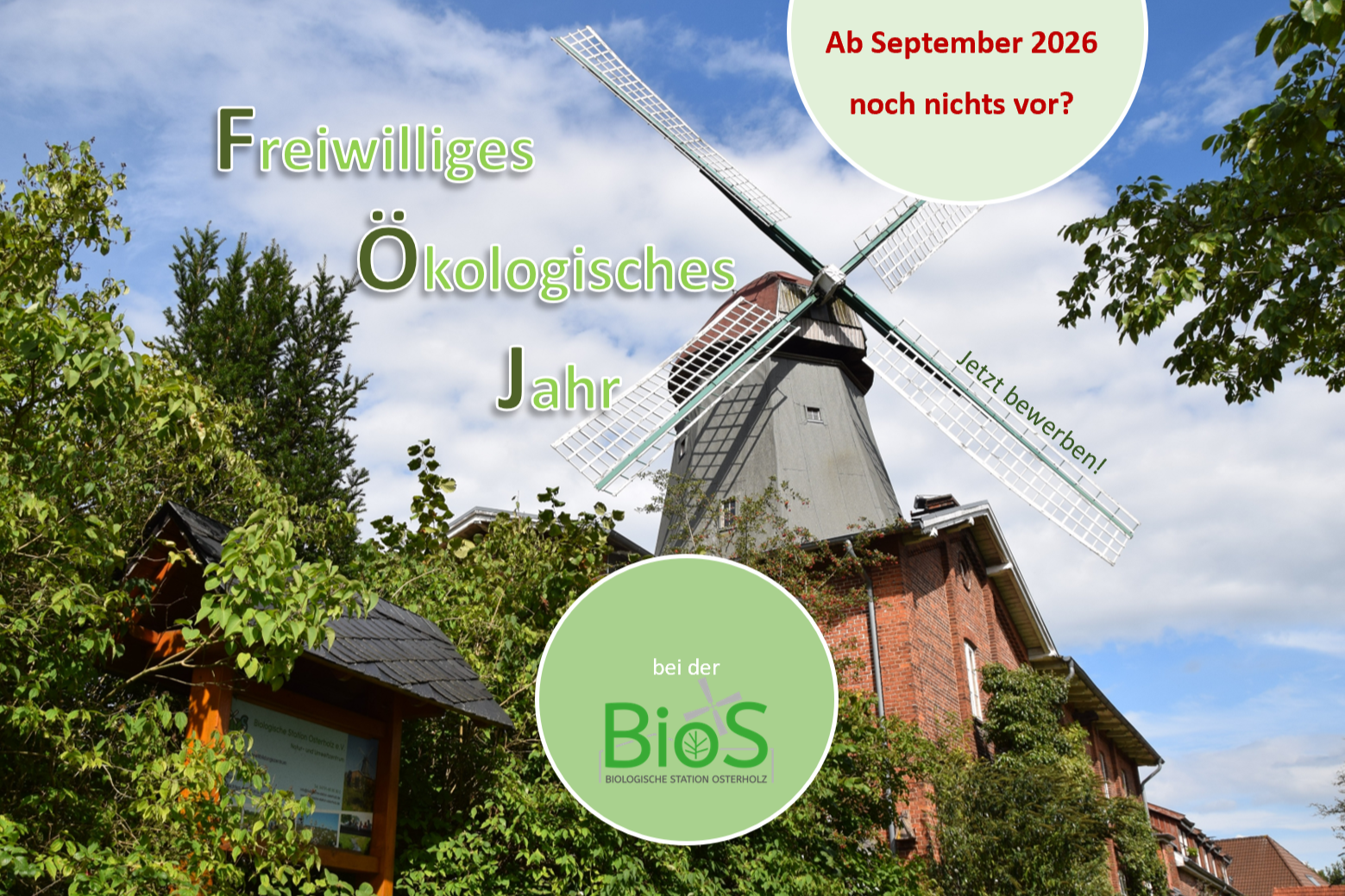 Das FÖJ bei der BioS beginnt am 1. September 2026. Bewerbungen sind ab sofort möglich. Alle Infos finden Interessierte auf der Website https://foej.niedersachsen.de. Bewerben könnt ihr euch direkt unter info (at) biologische-station-osterholz.de. Das BioS-Team freut sich über eure Bewerbungen!